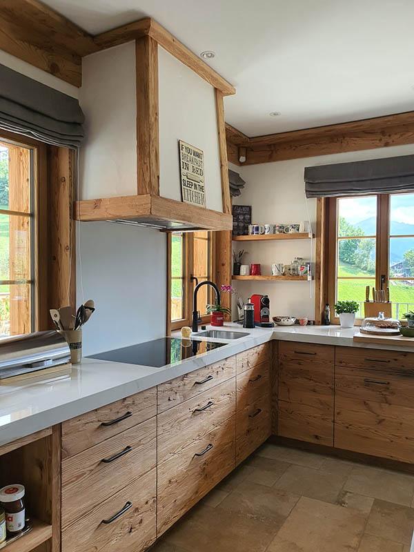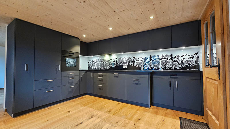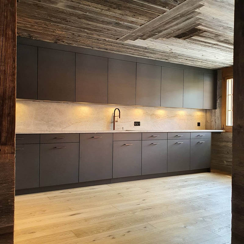 Individuelle Küchen nach Mass, gefertigt in unserer Schreinerei. Die gezeigten Impressionen zeigen hochwertige Küchen und Innenausbauten aus Schweizer Handwerk – funktional, langlebig und zeitlos im Design.